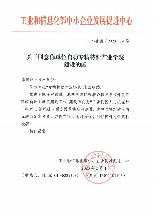 近日,工业和信息化部同意米兰官网启动专精特新产业学院(工业机器人与机械加工技术方向)建设工作。