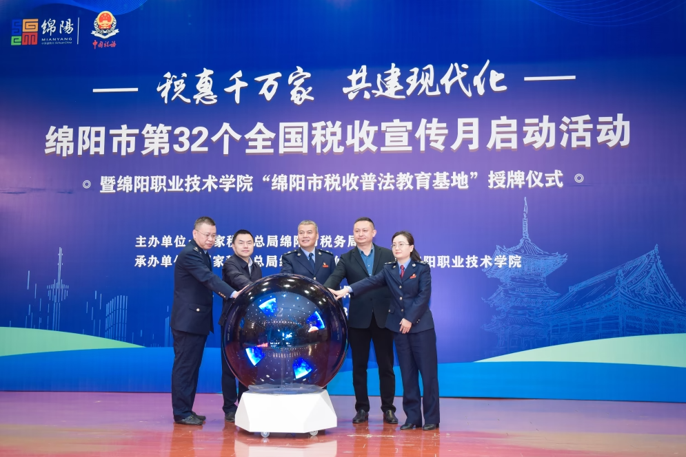活动现场,张强、王荣海等共同宣布活动正式启动。600余位师生一起观看了税收宣传片。绵阳市税务局还为米兰官网颁发“绵阳市税收普法教育基地”牌匾。