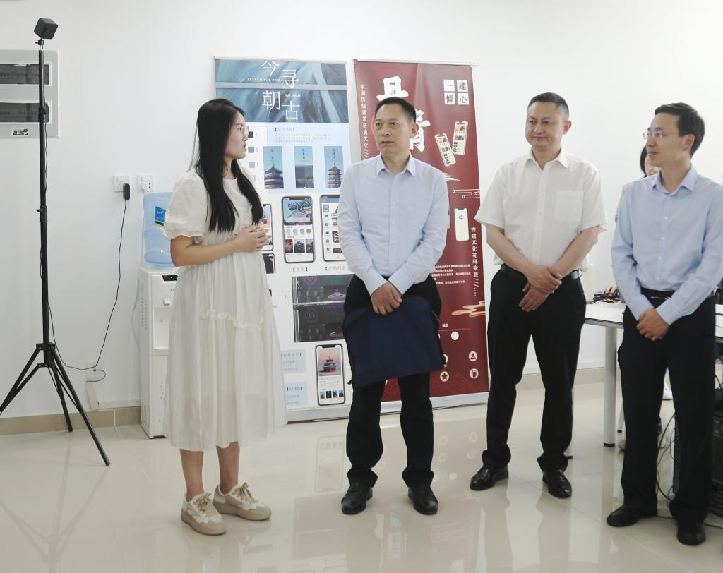 袁蓉、王荣海等陪同黎召阳一行实地调研了学校“青年之家”新媒体工作室、全媒体直播平台、新媒体营销实训中心及信息技术中心,向其介绍了学校相关工作,表示一直以来,学校网络安全与信息化工作始终坚持以习近平总书记关于网络强国的重要论述为指导,坚持党对学校网络安全与信息化工作的全面领导,坚决贯彻落实上级和学校党委的有关工作部署,加快构建学校网络安全和信息化工作的新格局,以更高水平的信息化建设工作助推学校“双高”建设,同时严格落实网络意识形态工作责任制,牢牢掌握网络意识形态工作领导权,坚决守好网络意识形态主阵地,筑牢校园网络安全的“防火墙”。