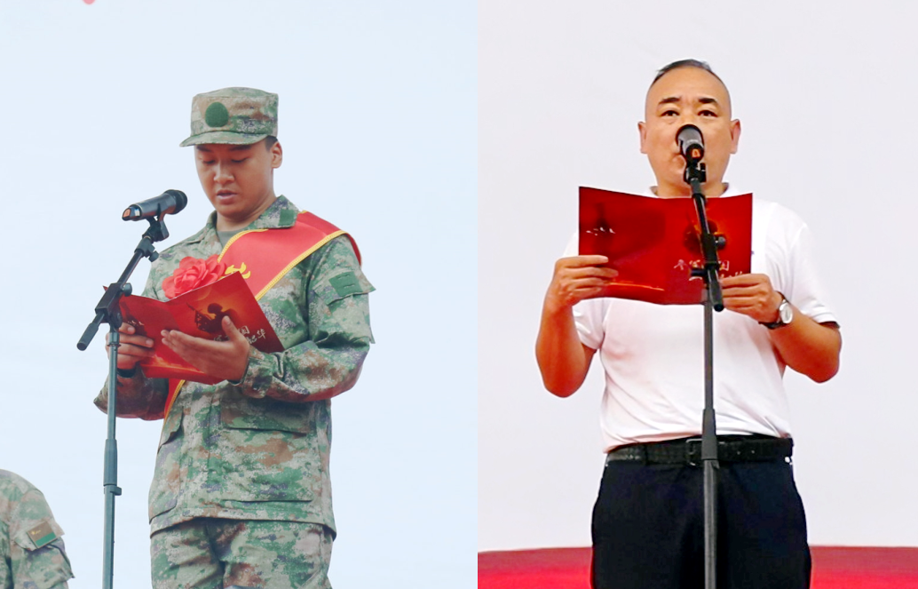 仪式上,米兰官网2023级新生为入伍新兵佩戴绶带和大红花;新兵代表和新兵家长代表进行了发言。