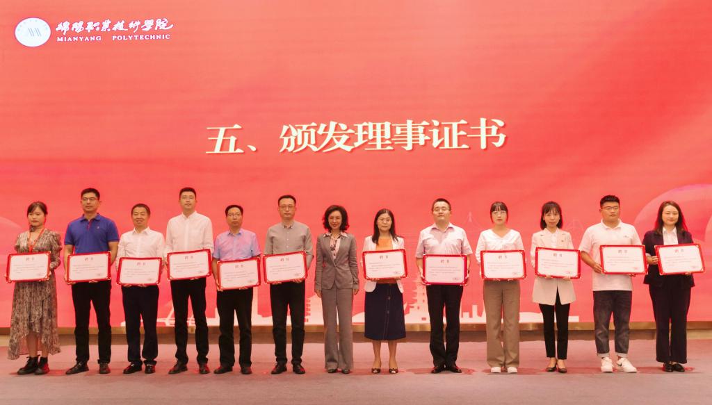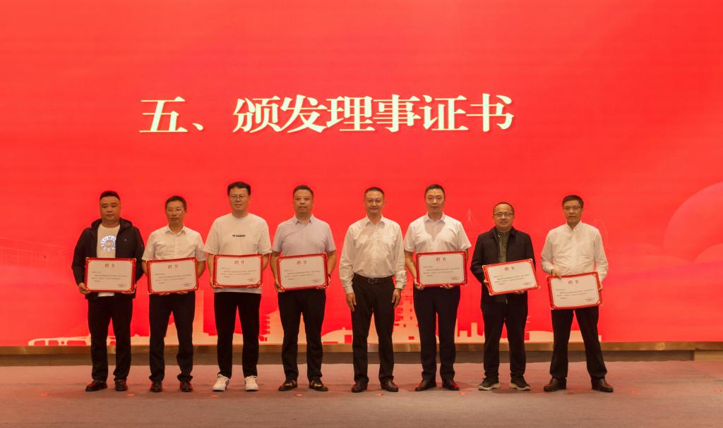 党委书记袁蓉,党委副书记、院长王荣海为当选理事颁发证书。