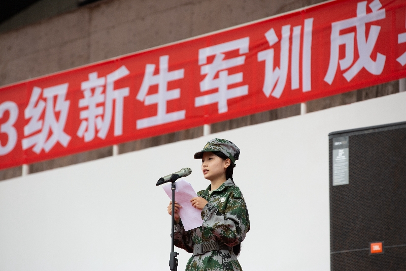 党委常委、副院长代红英在会上宣读军训先进集体、优秀学员和2023年新生奖学金表彰决定。校领导为获奖集体及个人颁发荣誉证书。2023级新生代表,英语231班蒋苗发言,表达了要在大学里努力学习,不辜负老师和亲人的期望,打造出一片新天地,努力成为堪当民族复兴重任的时代新人的决心。