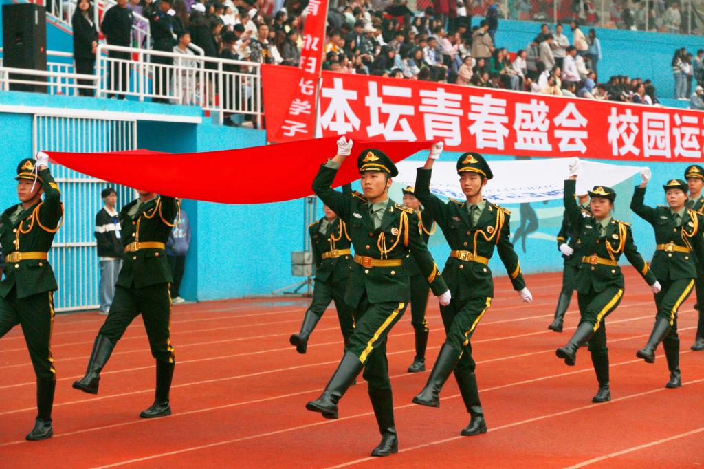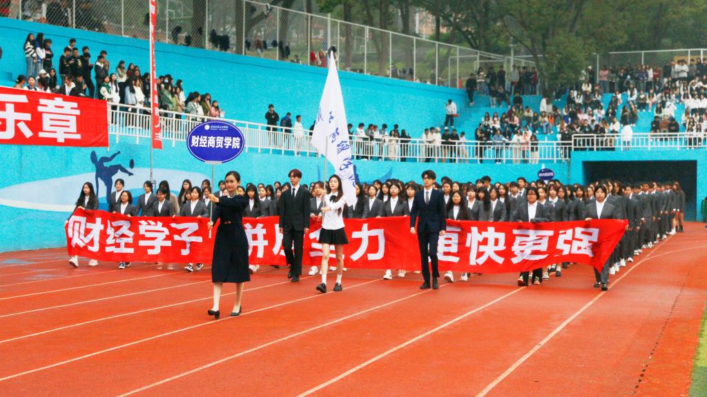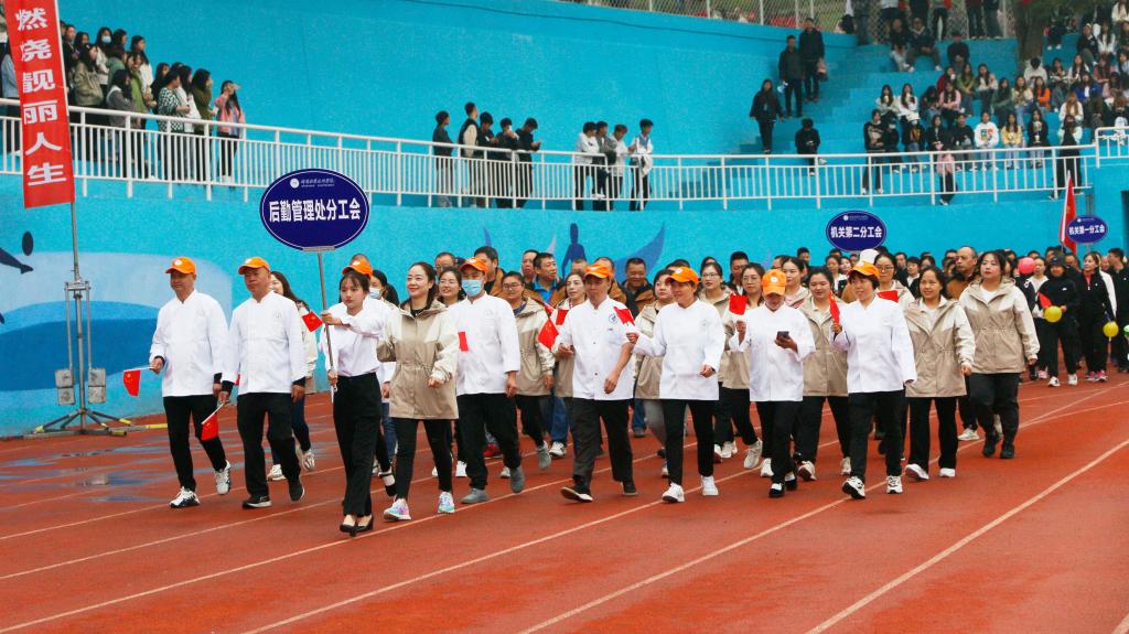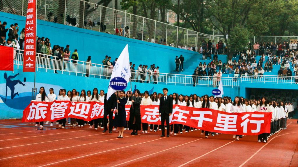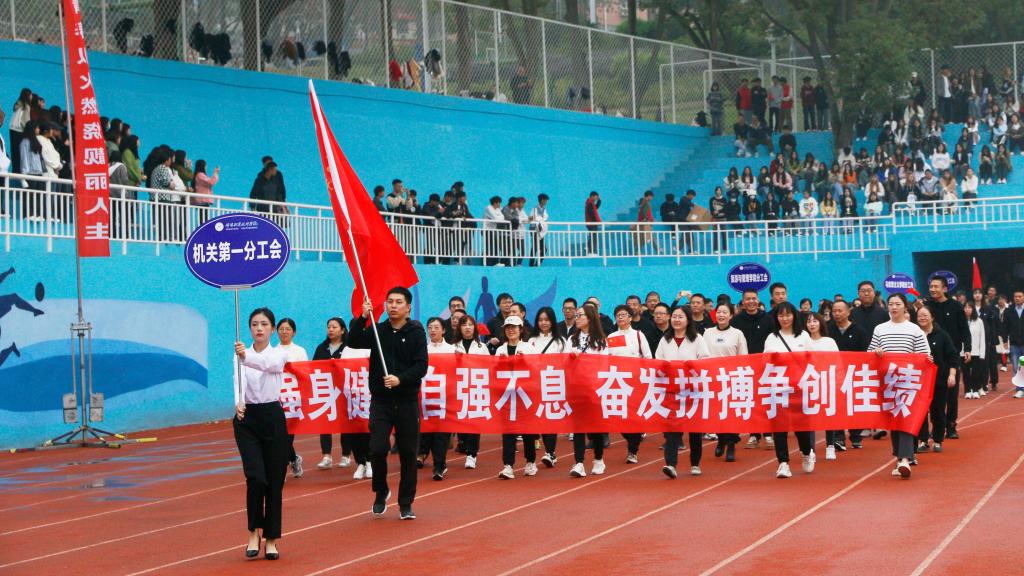 伴随着《运动员进行曲》,国旗护卫队、鲜花方队、彩旗方队、裁判员方队、各二级学院方队、教职工代表队步伐矫健、口号响亮、英姿飒爽、昂首阔步走过主席台。行进和表演中,全体师生意气风发、斗志昂扬,充分展现了积极向上的精神风貌。