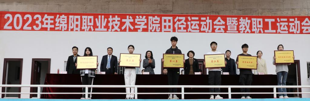 10月27日下午,ac米兰官网中文网站2023年学生田径运动会暨教职工运动会闭幕式在田径运动场举行。党委书记袁蓉等全体在家领导出席闭幕式并为获奖单位颁奖。党委常委、副院长代红英宣读教职工运动会表彰文件,党委常委、宣传统战部部长陈波宣读学生运动会表彰文件。