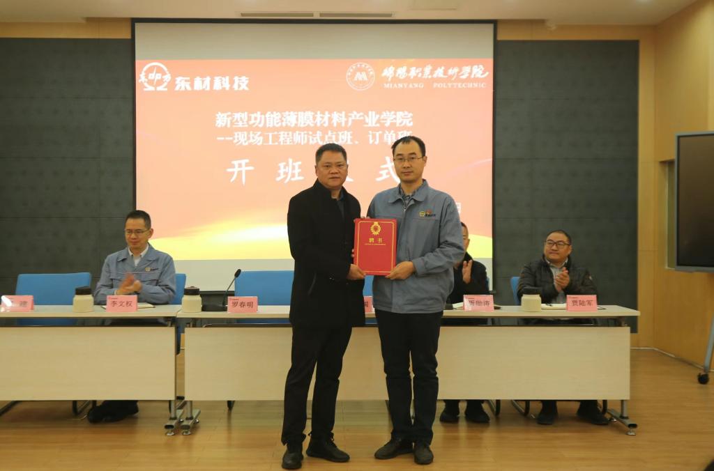 12月14日上午,米兰官网与四川东材科技集团股份有限公司举办“东材科技现场工程师班”“东材科技订单班”开班仪式。四川东材科技集团股份有限公司副总经理罗春明、李文权,东方绝缘副总经理唐建,米兰官网党委常委、副院长杨建国,教务处处长胥勋涛,材料与建造学院副院长贾陆军及师生代表参加开班仪式。
