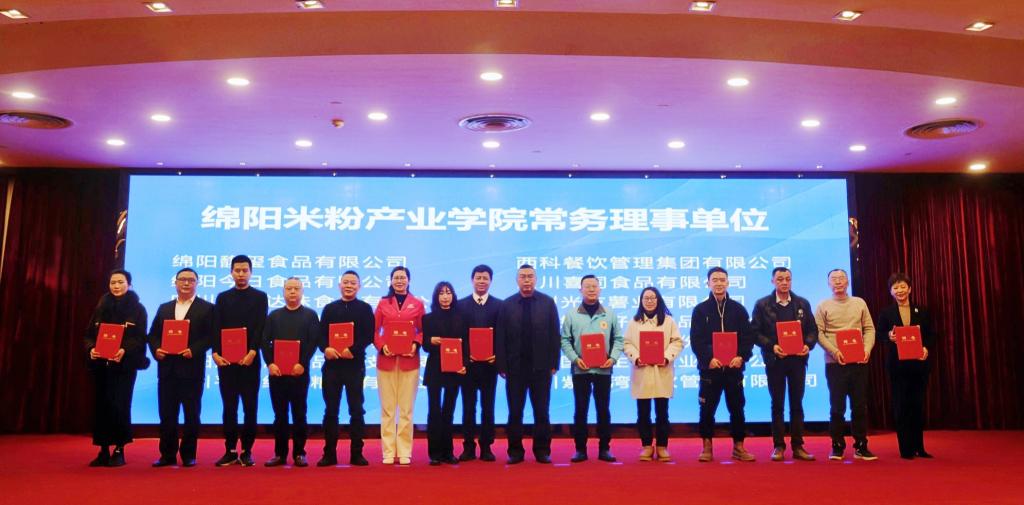 会议审议并通过了《绵阳米粉产业学院理事会章程》,审议并通过了理事长、常务理事、理事单位建议推荐名单。与会嘉宾为相关单位颁发聘书。会议还进行了政、校、企、行四方产教融合项目签约仪式。