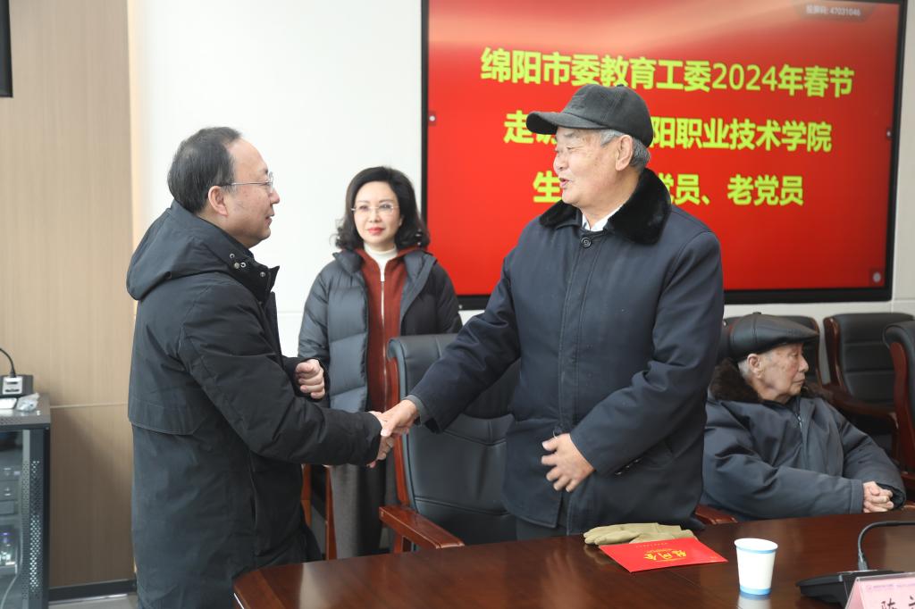在新春佳节到来之际,1月25日下午,市教体局一级调研员周时光一行代表市委教育工委和市教体局来校看望慰问老党员、生活困难党员。党委书记袁蓉陪同。