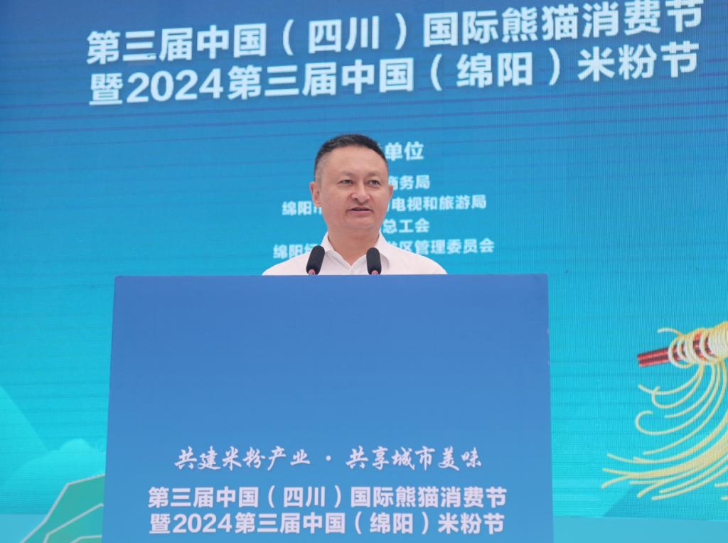 9月13日上午,“第三届中国(四川)国际熊猫消费节暨2024第三届中国(绵阳)米粉节”开幕式在经开万达广场举行。米兰官网党委副书记、院长王荣海,党委常委、副院长苟安经出席活动。