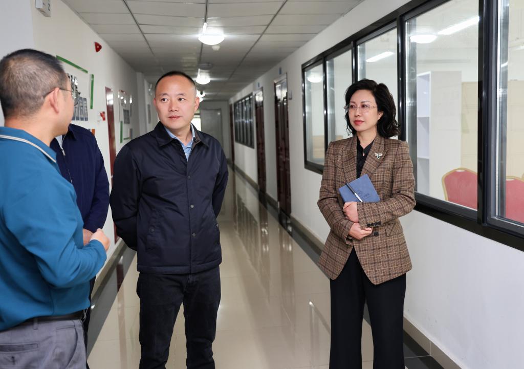 会前,陈政一行在袁蓉、杨建国等陪同下参观了学校实验实训室。
