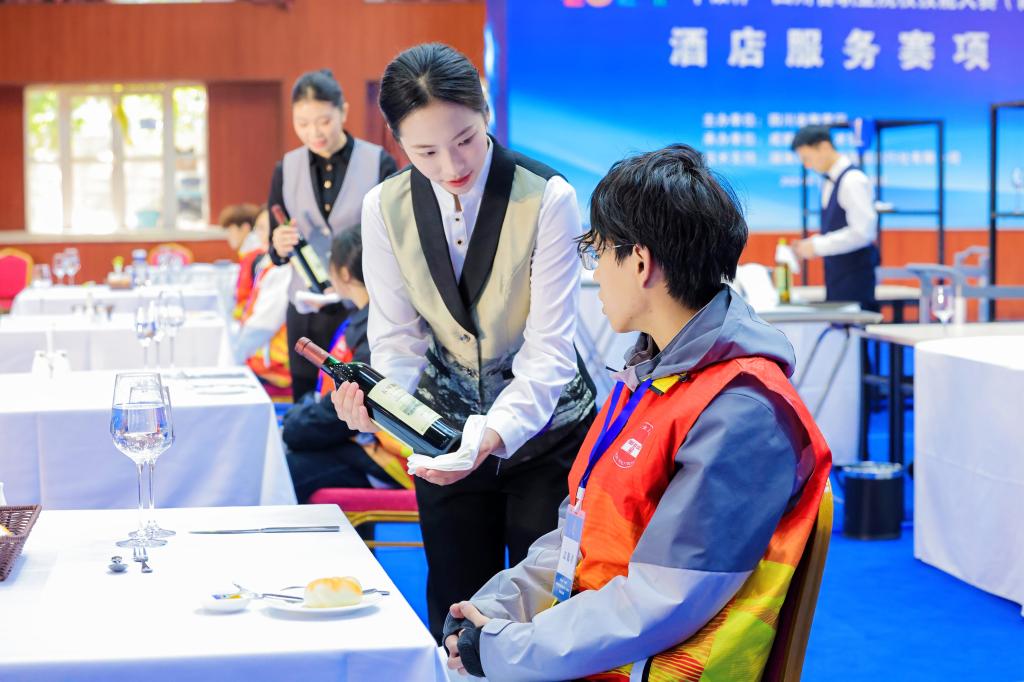 据悉,本赛项以“借鉴国际标准、突出中国特色、贴近生产实际、体现工作过程”为宗旨,考核学生在酒店服务过程中的整体综合素质及相关能力。赛项内容涵盖了酒店管理与数字化运营专业的核心技能和相关岗位职业素养,反映了现代酒店工作的个性化服务、信息化操作、国际化趋势的特点,体现了酒店工作过程的规范化、实境化、流程化、个性化与职业化要求。