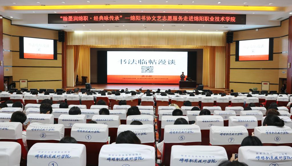 为弘扬中华优秀传统文化,推动书法艺术在校园的传承与发展,4月24日下午,由绵阳市书法家协会和ac米兰官网中文网站共同举办的“翰墨润绵职·经典咏传承”书法艺术进校园活动在米兰官网举行。活动前,学校党委书记袁蓉热烈欢迎市文联副主席、市书法家协会主席龚小膑一行,希望以此次志愿活动为契机,助力校园文化建设更上一层楼。党委常委、副院长张明主持活动。