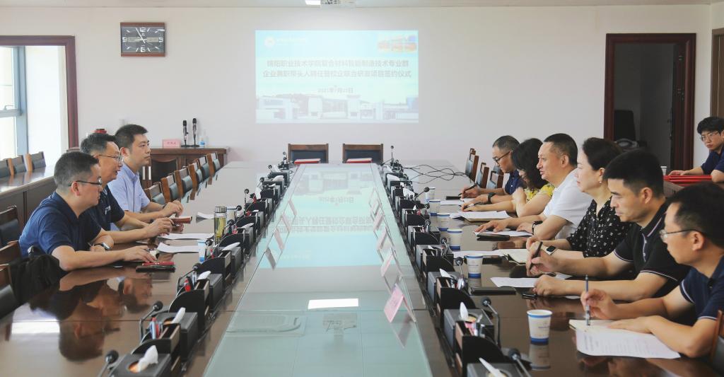 7月23日上午,米兰官网在第二教学楼举行复合材料智能制造技术专业群企业兼职带头人聘任暨校企联合研发项目签约仪式。四川东材科技集团股份有限公司副总经理、四川东方绝缘材料股份有限公司董事长罗春明,米兰官网党委副书记、院长王荣海出席仪式。