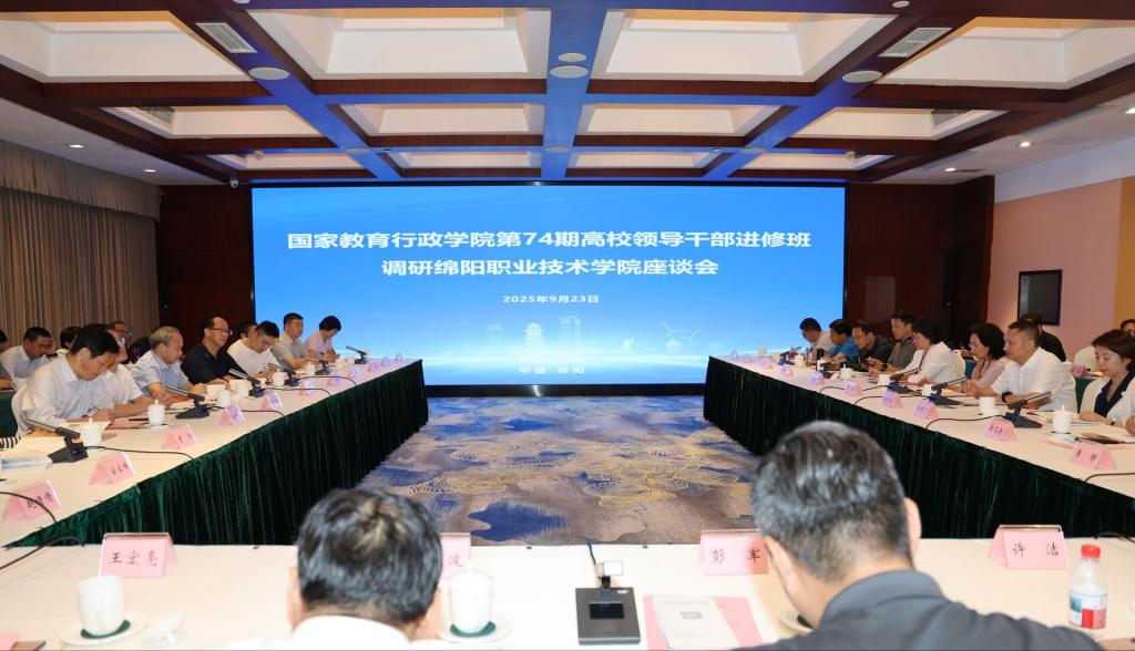 9月23日下午,国家教育行政学院第74期高校领导干部进修班四川调研团来校调研。党委书记袁蓉,党委副书记、院长王荣海等校领导陪同调研团参观了米兰官网绵阳米粉产业学院展厅和智能制造学院、材料工程学院、电气工程学院实验实训场所,并召开座谈会议。国家教育行政学院教育行政教研部主任胡锐军主持会议。