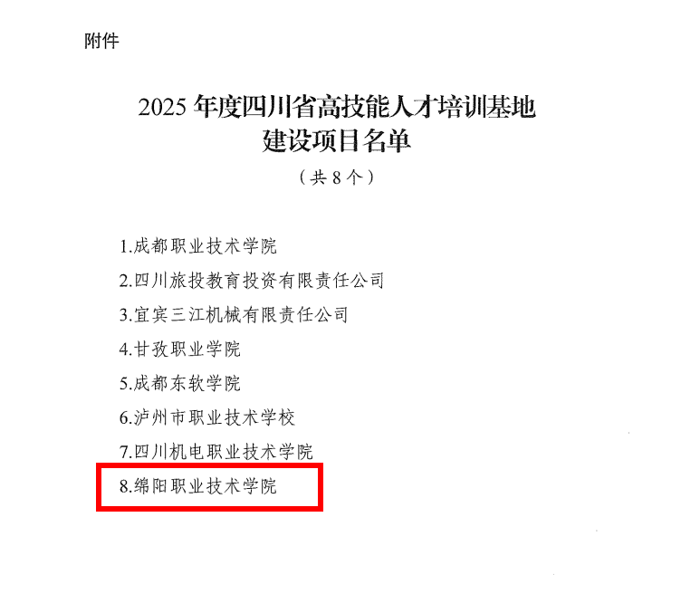 近日,四川省人力资源和社会保障厅、四川省财政厅联合发布《关于公布2025年度四川省高技能人才培训基地建设项目名单的通知》(川人社函〔2025〕860号),经单位申报、推荐遴选、专家评审、综合评议和社会公示等程序,米兰官网成功入选2025年度四川省高技能人才培训基地建设项目名单。