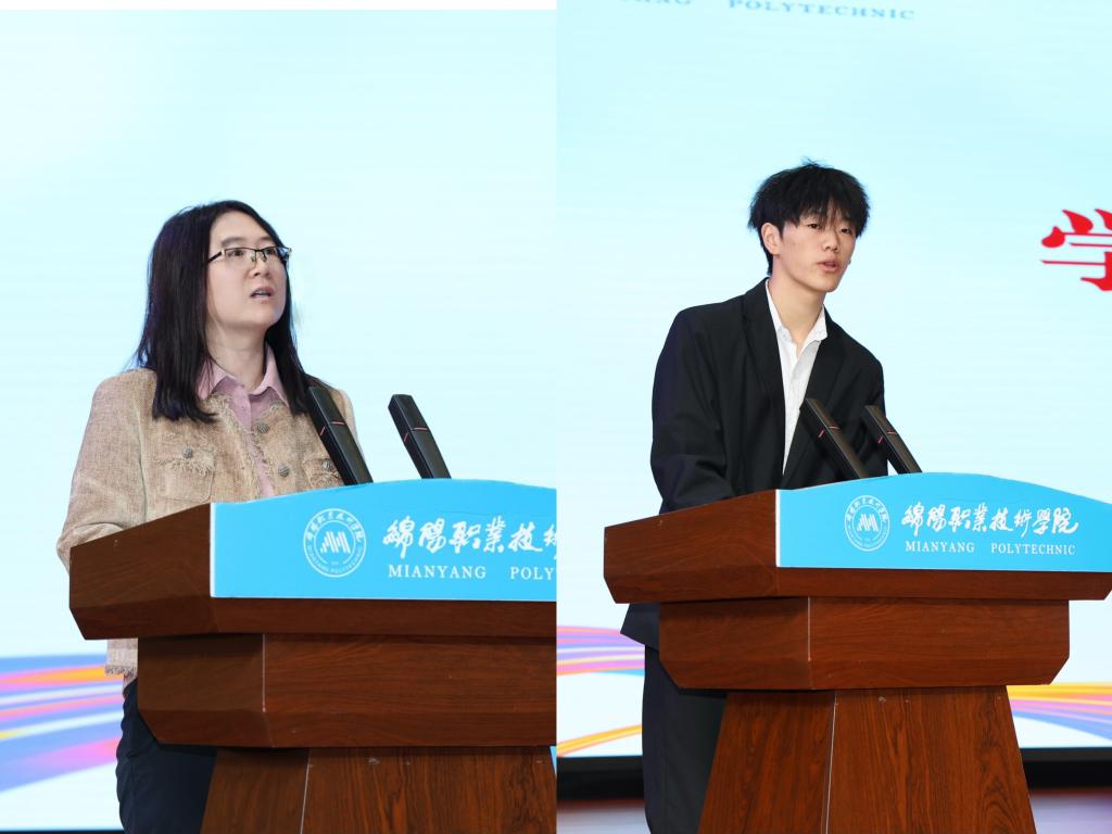 “挑战杯”获奖代表岳付凯、优秀教师代表王小元分别结合自身实际分享了自己在学习和教育中的成长与感悟,表达了青年对科技、文化、艺术的热爱与追求。学生代表杨鸿茗宣读第二十届校园科技文化艺术节倡议书。