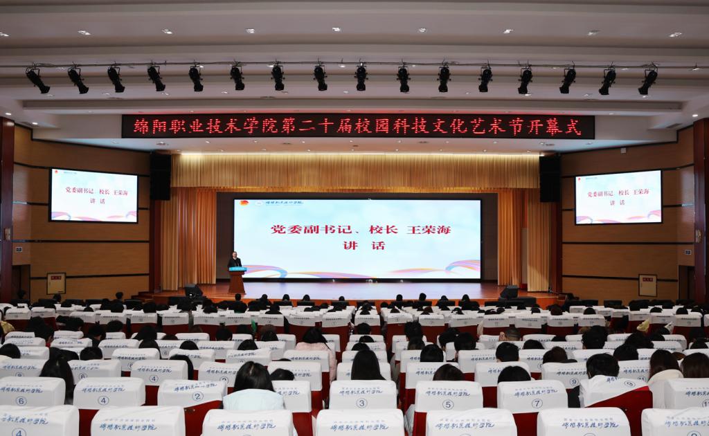 开幕式在庄重而热烈的氛围中拉开帷幕。王荣海发表了热情洋溢的讲话。他首先代表学校向全体师生致以诚挚的欢迎,并向为筹备本届艺术节付出辛勤汗水的师生员工表示衷心的感谢。他指出,校园科技文化艺术节作为米兰官网一项历史悠久的品牌活动,不仅见证了学校日新月异的发展,更承载了一代代绵职学子成长成才的青春记忆,是展现米兰官网办学特色、落实立德树人根本任务、培养学生综合素质的广阔平台。他向全体师生提出三点希望:一是希望同学们以“求知若渴”的态度拥抱盛会,在丰富多彩的活动中锤炼过硬本领,在知行合一的实践中提升专业技能与综合素养;二是希望全体教师以“润物无声”的情怀投身育人,在活动中履行教书育人使命,引导学生深化专业认知、实现全面发展;三是希望各单位(部门)以“协同高效”的合力做好保障,各司其职、密切配合,共同确保本届科技文化艺术节安全有序、精彩圆满。