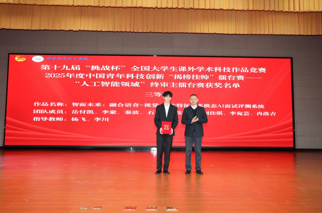 活动宣读了《第二十届校园科技文化艺术节活动方案》《第十九届“挑战杯”全国大学生课外学术科技作品竞赛2025年度中国青年科技创新“揭榜挂帅”擂台赛——“人工智能领域”终审主擂台赛获奖名单》《第十八届“挑战杯”四川省大学生课外学术科技作品竞赛获奖名单》《第十九届“挑战杯”全国大学生课外学术科技作品竞赛校赛获奖名单》,领导为获奖代表颁奖。