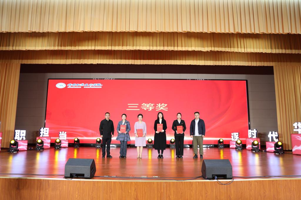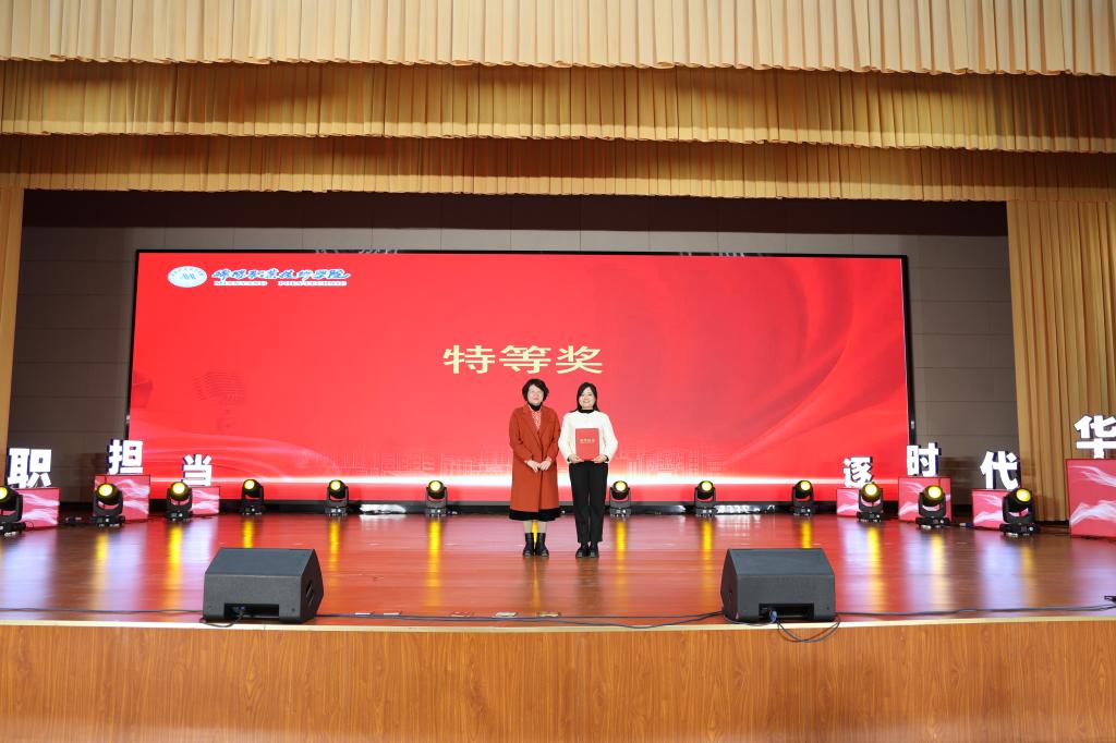 经过激烈角逐,大赛最终评选出特等奖1名、一等奖3名、二等奖2名、三等奖4名及优胜奖若干。马克思主义学院党总支的沈亚鹤老师荣获特等奖,建筑工程学院党总支唐曙、智能制造学院党总支邓靖川和机关二党总支何丹青三位老师荣获一等奖。与会领导为获奖选手颁发荣誉证书。