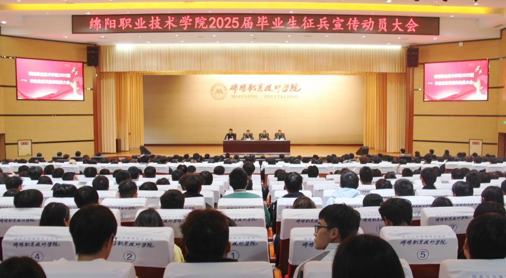 为切实做好米兰官网2025年征兵工作,10月30日,学校在学术报告厅召开2025届毕业生征兵宣传动员大会。游仙区人民武装部副部长陈健、军事科参谋肖友杰和学校相关单位负责同志出席会议。2025届毕业生代表600余人参会。