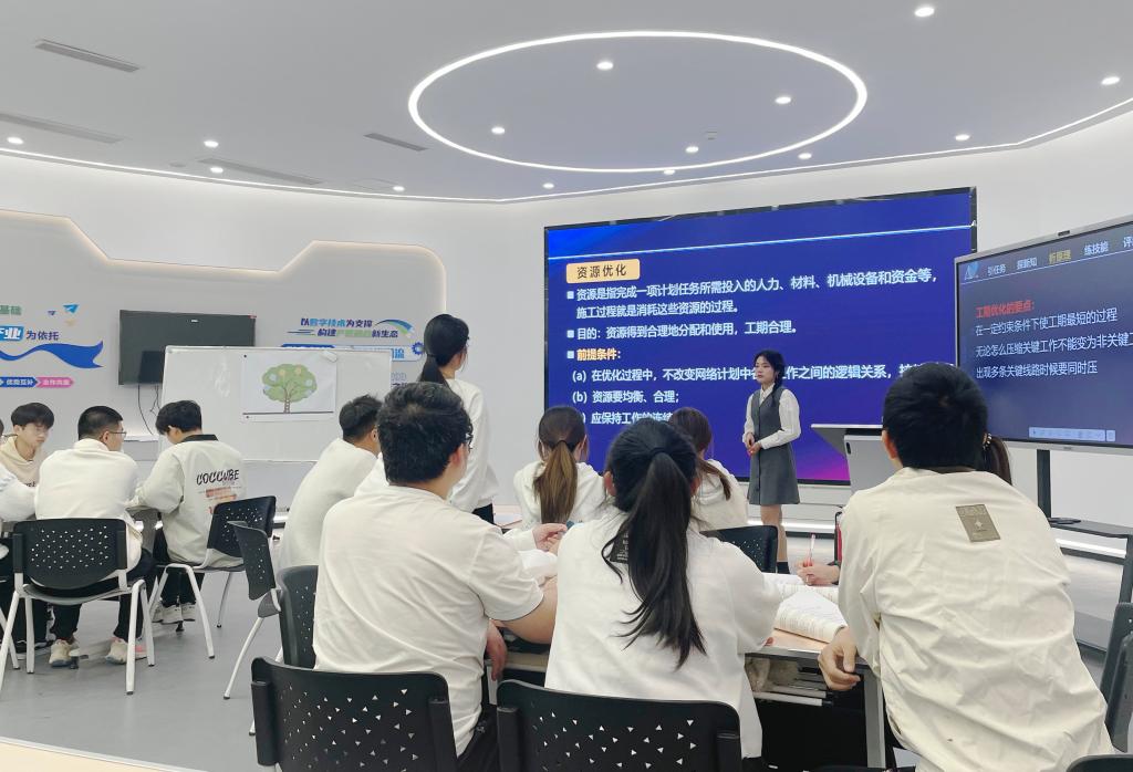 活动中,青年教师寇颖以《建筑施工组织与管理》中的“优化网络计划工程”内容为载体,按照“引任务、探新知、析原理、练技能、评成果、归要点”的教学流程进行了公开教学。课程以问题和视频短片形式导入,讲练结合并运用学习通平台适时互动,教学整体环节设计完整,教学组织有序,有效融入了课程思政内容,学生参与度高,课堂氛围融洽,得到了一致好评,展现出青年教师的教学风采。