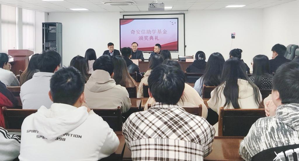 11月22日上午,电子与信息学院在第二教学楼举行“奇安信助学基金”颁奖仪式。奇安信科技集团股份有限公司教育行业四川分区总监文利健、电子与信息学院党总支书记解书凯等出席会议,并为获奖学生颁奖。