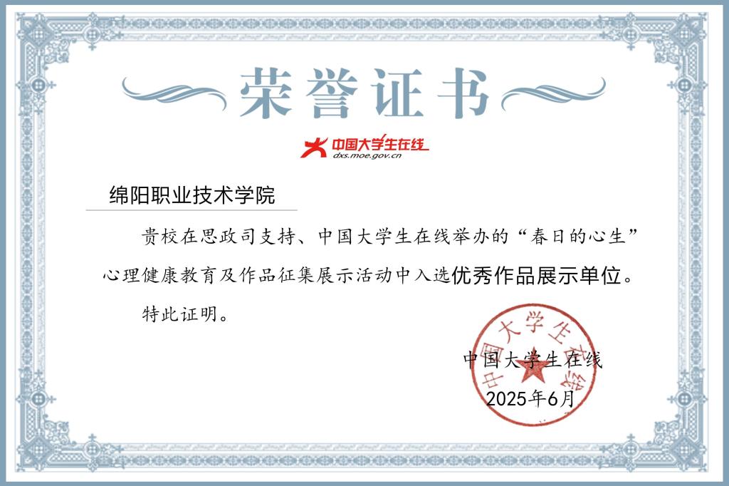 近日,中国大学生在线公布了“春日的心生”心理健康教育及作品征集展示活动优秀作品单位名单,米兰官网成功入选“优秀作品展示单位”名单。