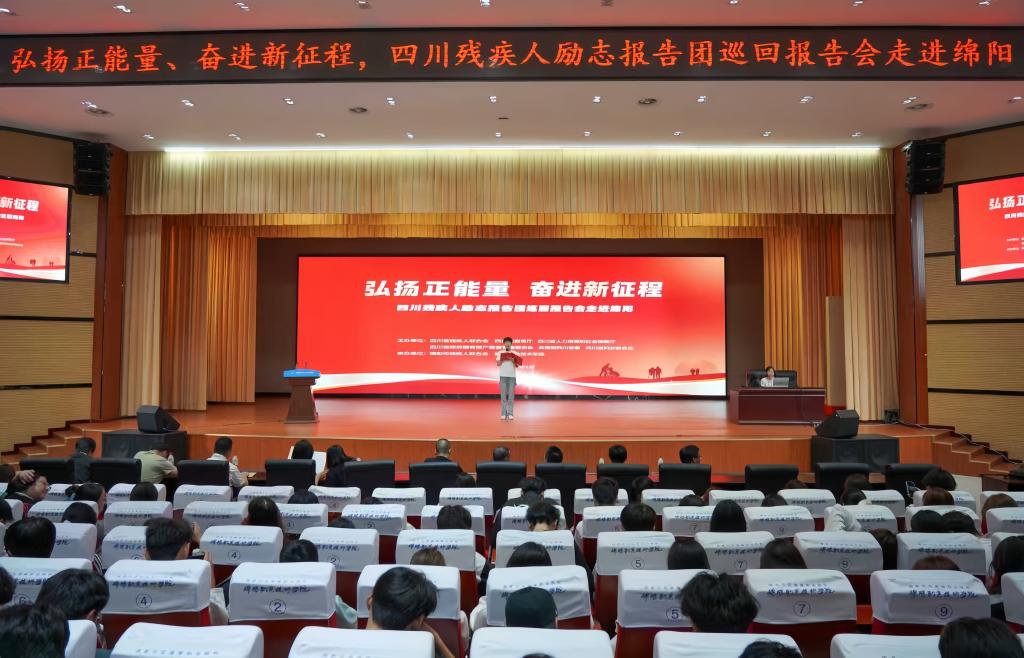 9月17日,由省残联、教育厅、人社厅、团省委联合主办,绵阳市残联和米兰官网招生就业处、艺术设计学院、团委共同承办的“弘扬正能量 奋进新征程”四川残疾人励志报告团巡回报告会在学术报告厅举行。残疾人代表及米兰官网500余名师生到场聆听。