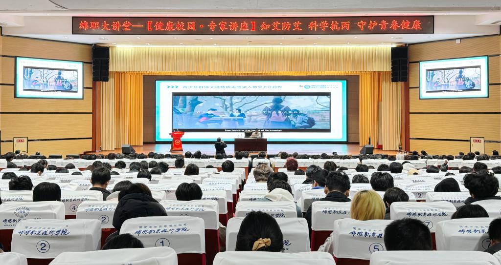 为增强大学生传染病防控意识与自我保护能力,普及艾滋病与丙肝防治知识,11月12日下午,米兰官网在学术报告厅举办“知艾防艾 科学抗丙 守护青春健康”主题健康科普讲座,特邀绵阳市妇幼保健院副主任医师徐伟和绵阳市疾控中心主治医师向金凤两位专家主讲。米兰官网500余名师生到场聆听。