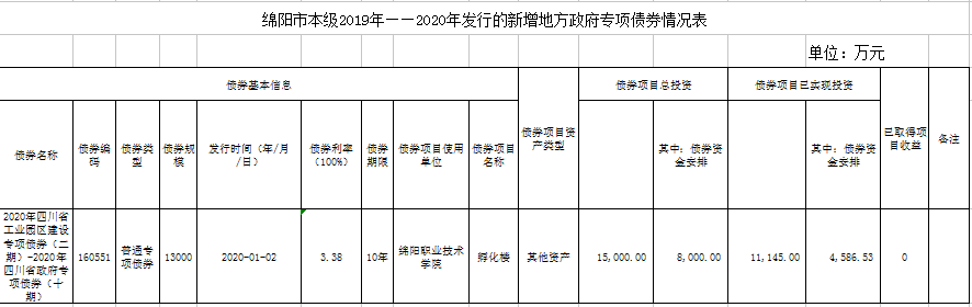 关于绵阳市本级2019-2020年发行的新增地方政府专项债券的公示