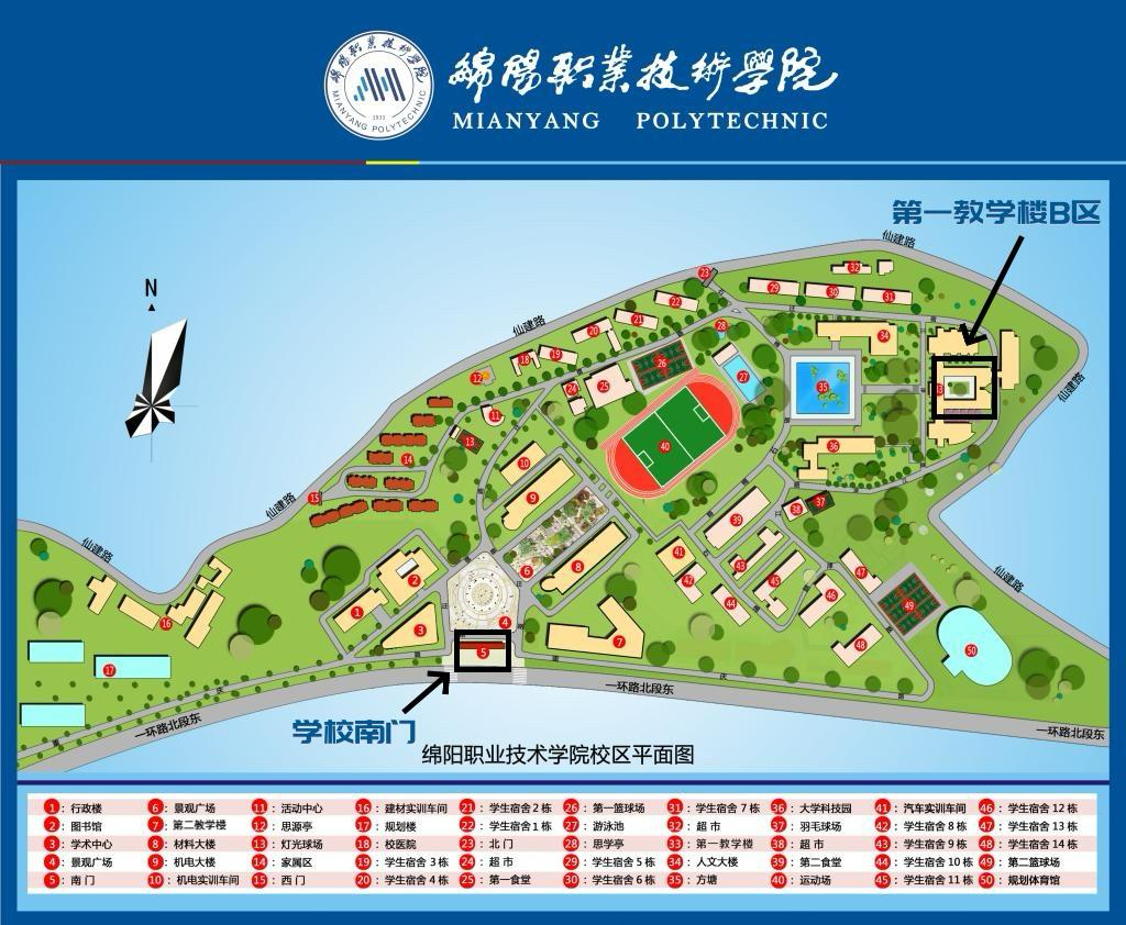 考生可在12月19日15:00-17:00期间到学校现场查看考场安排和其他注意事项。所有考生需从学校南门(绵阳市新一环路北段6号)进入校园后(考生车辆禁止进入校园),从第一教学楼B区大门进入考场区域。第一教学楼在12月19日17:00至12月21日18:00实行全封闭式管理,在此期间,所有人员仅能凭《准考证》或考务工作证在规定的时间内进入。
