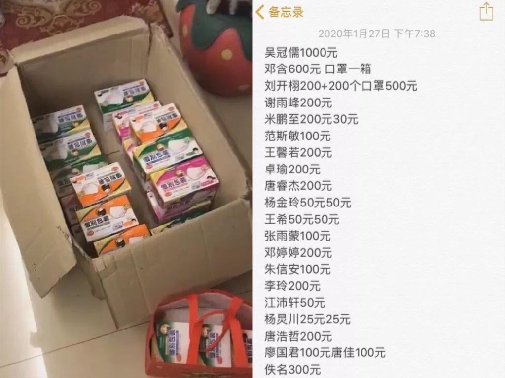 “我舅妈在四川省人民医院工作,她告诉我武汉医院各种防护物资都很短缺,很多医务人员因为缺少口罩和防护服,很多个小时都不吃不喝不上厕所。我听后心情十分沉重,决定动员同学和朋友一起向医院捐助物资,大家都非常赞同!”邓含说到。由于心情迫切和经验不足,他们在募集物资过程中遭遇到种种波折,但他们并没有因此而退缩,反而更加坚定做好募捐工作的决心。他们不断总结经验,不断拓展捐助渠道,最终成功将物资悉数送到医护人员的手中。