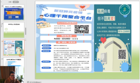 按照学校疫情防控工作领导小组部署安排,2月24日以来,学校心理健康教育与咨询中心(简称“心理中心”)统筹安排线上课程、线上培训等内容,通过超星学习通、QQ直播间、腾讯会议、钉钉、中国大学生慕课、雨课堂等网络平台进行在线直播和网络答疑,传播和讲授心理学知识,帮助全校师生丰富疫情心理防护知识,帮助大家消解负面情绪,补充心理能量。