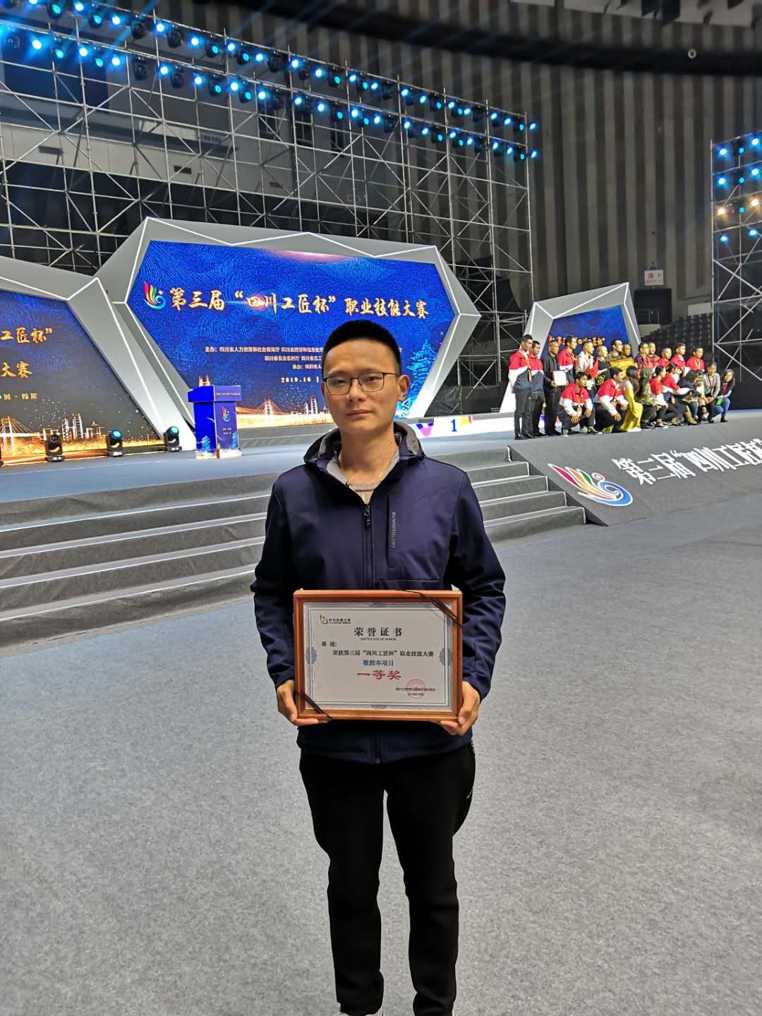 因为技术过硬,蒋凌代表绵阳市参加了第三届“四川工匠杯”职业技能大赛“数控车项目”。在备赛期间,他每天起早贪黑,从早忙到晚,一天工作12个小时都是常态。功夫不负有心人,蒋凌最终取得全省第一名的好成绩。