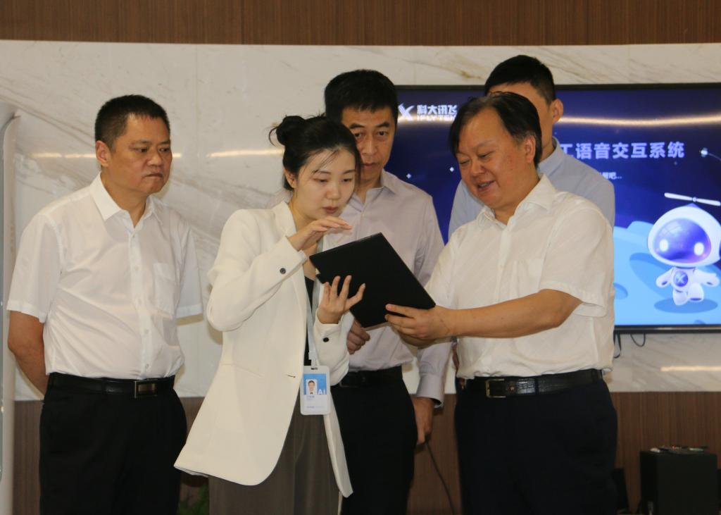 签约仪式前,李剑峰陪同何礼果一行参观了科大讯飞公司展厅和办公区域,介绍了公司的发展历程、最新技术进展及讯飞在AI教育、AI医疗、AI政法、AI服务等方面的应用场景及产业布局。