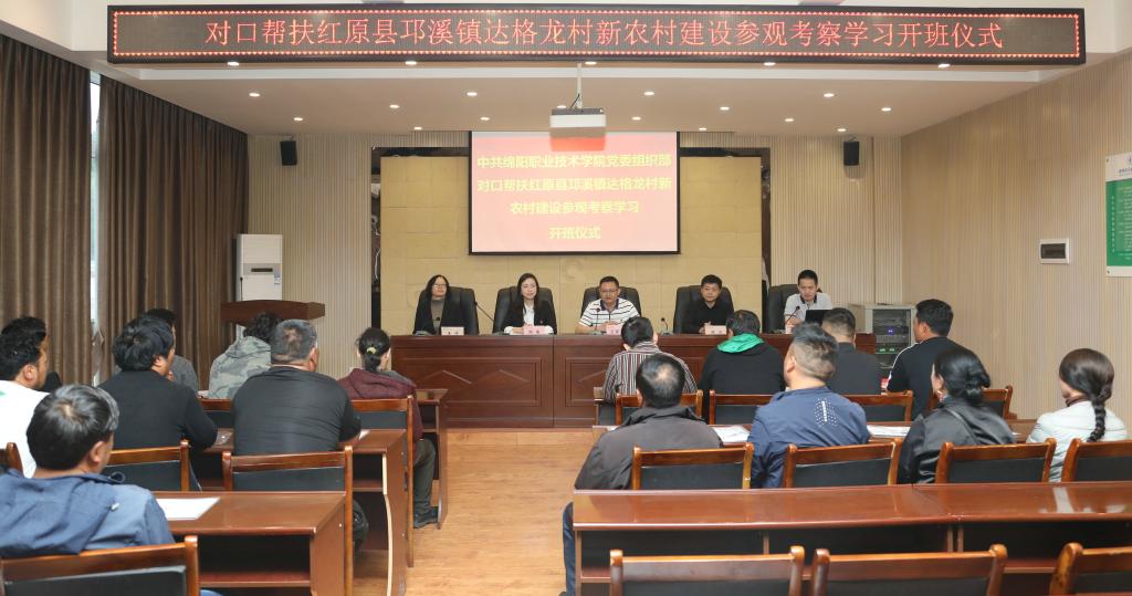 在开班仪式上,学校党委副书记王荣海代表学校党委对考察团一行的到来表示欢迎,介绍了学校对红原县的帮扶情况,并表示,2020年是我国脱贫攻坚的决战决胜之年,根据绵阳市委市政府的安排,学校对达格龙村开展了多年的深度帮扶工作,成功实现了完全脱贫,建立了深厚的友谊,取得了良好的成果。脱贫并不意味着帮扶工作的结束,学校将一如既往的对达格龙村给予大力帮扶和支持。