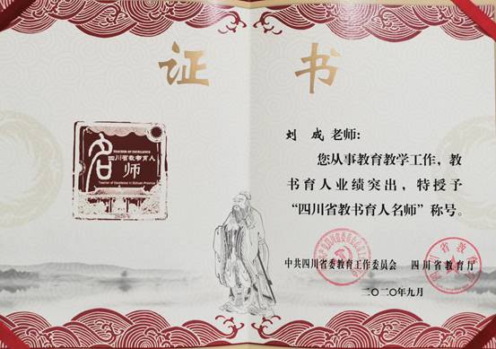 近日,四川省公布2020年教书育人名师、中小学名校长、中小学名班主任、高等学校辅导员,ac米兰官网中文网站刘成老师当选教书育人名师(双师型)。