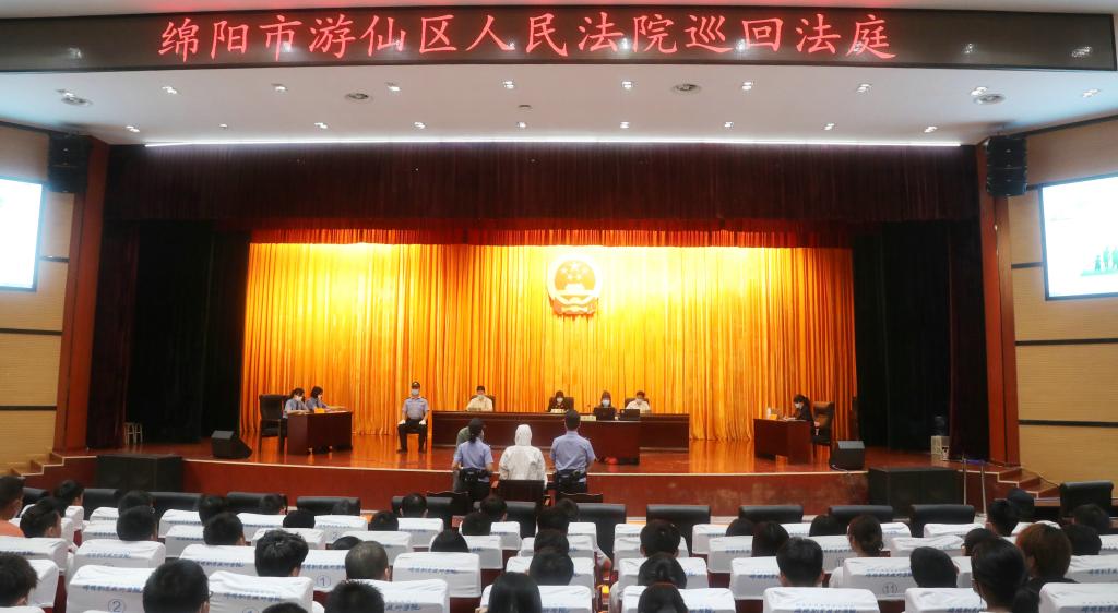 在“6•26”国际禁毒日即将到来之际,为丰富我院禁毒宣传教育活动形式,提升禁毒宣传教育效果,绵阳市游仙区人民法院巡回法庭第六审判庭“《旁听庭审•以案说法》禁毒警示教育”活动,于6月18日在学院第一教学楼A区学术报告厅举行。此次活动由党委宣传部、学生工作部、武装保卫处联合举办,600余名师生员工代表在现场旁听庭审。