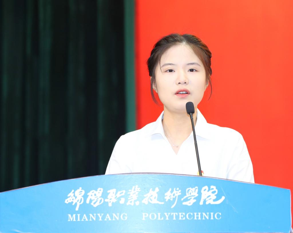 物流管理201班的税月同学代表在校生发言。她向学长学姐们送上最真诚的祝愿,祝愿他们在新的人生航程中书写美好篇章,鸿鹄展翅,前程似锦,用自身的魅力去实践青春无悔的诺言。