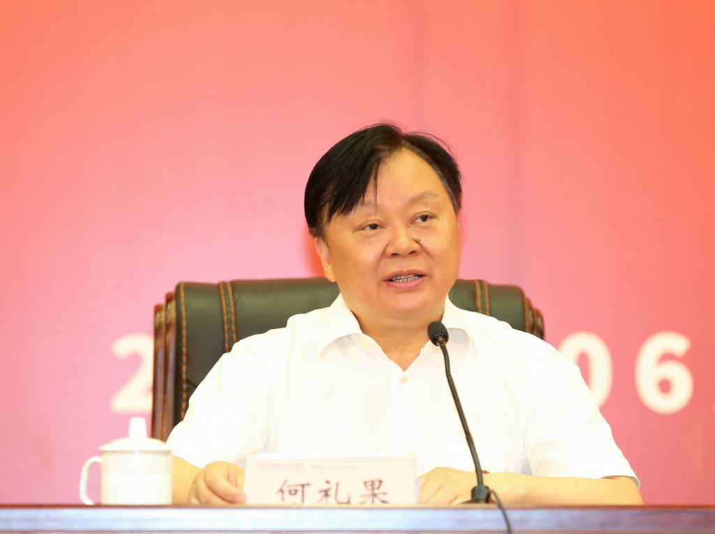 全体师生起立奏唱国歌后,党委副书记、院长何礼果代表全校师生向毕业生致以热烈祝贺和美好祝福。他讲道,凡是未来,皆有可期,三年的校园生活不过是未来人生的首付,你们迈出这道校门,就要做自己人生的尾款人。临别之际,我有几句话想送给大家,希望大家能在人生的征途中坚定前行,在命运的激流中奋勇前进。第一,与时俱进,用砥砺奋斗致芳华。不论你们是步入社会,还是继续深造,为了不让自己陷入“如果人生可以重来,我将不会虚度光阴”的懊悔中,为了未来能在那么多的不确定中抓住一丝可能而做好准备,都应该以奋斗的姿态增强实力、致敬芳华。第二,悦纳改变,以一腔热血赴山海。在成长中,不变的应该是目标,变化的应该是自己的知识和能力。希望你们在未来的学习、生活和工作中,都能悦纳变化,坚定理想,保持热爱,提升自己,做生活中的英雄。第三,学会坚守,凭一颗初心写人生。在一次次的人生选择中,希望你们不为外部名利所困扰,不被个人境遇所动摇,不忘初心、坚定航向,书写人生华章。