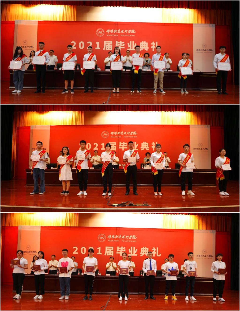 会议宣读了《ac米兰官网中文网站关于颁发2021届专科应届毕业生毕业证书的通知》《ac米兰官网中文网站关于表彰2021届优秀大学毕业生决定》《四川省教育厅关于公布2021届四川省优秀大学毕业生评选结果的通知》。信息工程系智能181班陈柯宇等132名学生荣获“四川省优秀大学毕业生”荣誉称号,材料工程系分析182 班吕其兴等264名学生被评为学校“2021届优秀大学毕业生”。随后举行了隆重的颁奖仪式及毕业证书发放仪式。学校领导为2021届四川省级优秀毕业生、校级优秀毕业生颁发了获奖证书,为各系毕业生代表发放了毕业证书。
