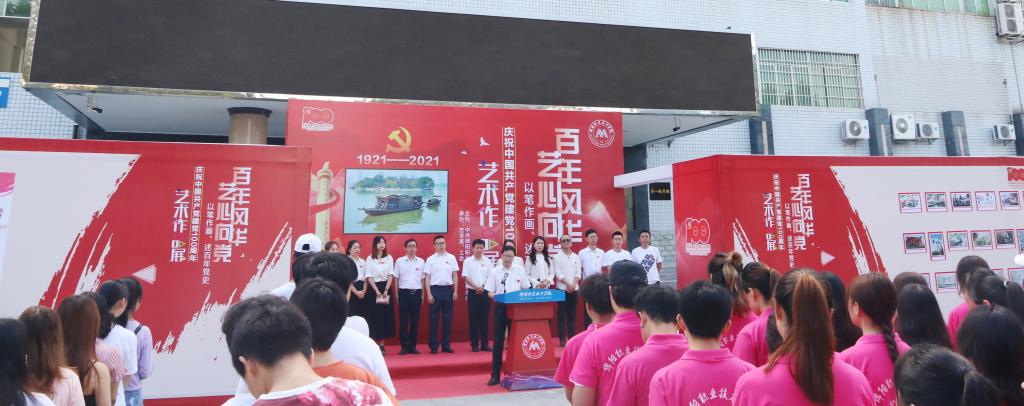 6月29日上午,由校工会和艺术系共同承办的“百年风华艺心向党”艺术作品展在第一教学楼前隆重开幕。学校党委常委、工会主席钟志万,党委常委、宣传统战部部长陈波,工会副主席蔡俊辉等出席开幕式。100名学生作者,8名指导教师以及学生代表共400余人参加了开幕式。