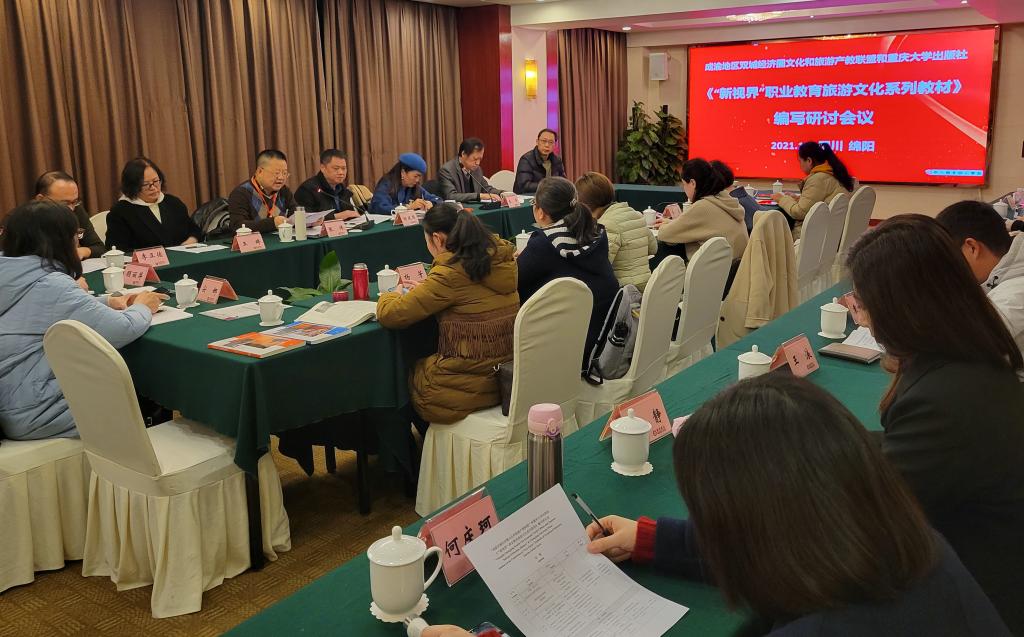 下午,“成渝双城经济圈文化和旅游产教联盟”与重庆大学出版社《“新视界”职业教育旅游文化系列教材》编写研讨会在绵州酒店召开,会议主要围绕当前所用教材情况、教材编写基础、思路以及特色创新等方面展开了热烈的讨论和交流。与会专家、企业代表对教材编写中如何进行校企双元开发、课程思政融入、数字教学资源建设、特色编排设计等方面发表了意见和看法。(刘晨晨、杜健)