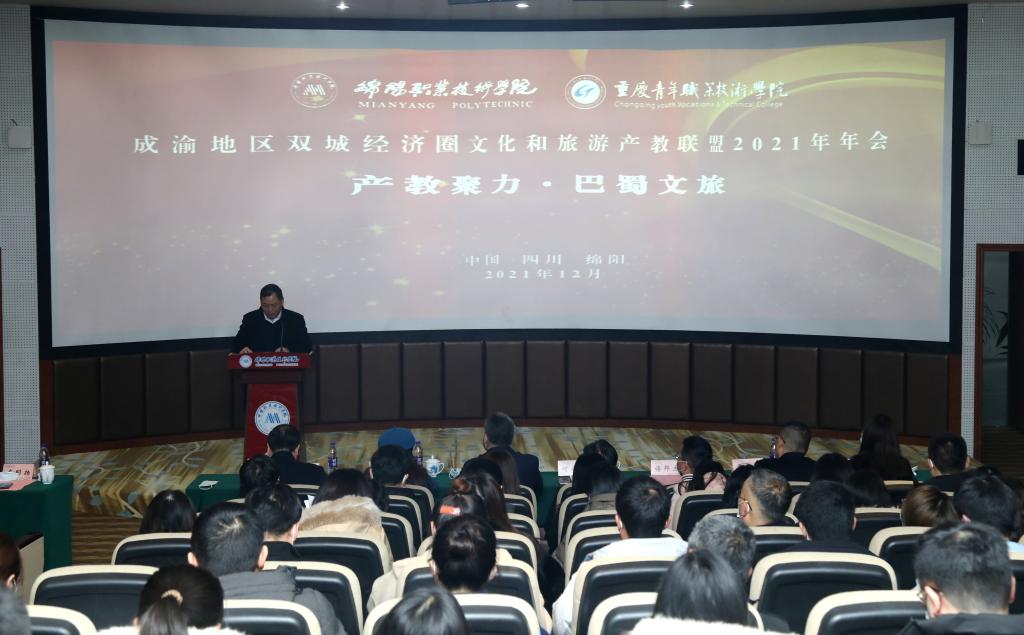 为深入学习习近平总书记关于文化旅游融合发展的重要论述,推动成渝地区文化和旅游产业协同发展,共商成渝地区双城经济圈文化和产教联盟发展大计,12月10日上午,成渝地区双城经济圈文化和旅游产教联盟2021年年会在米兰官网召开。该联盟是由米兰官网和重庆青年职业技术学院共同牵头,联合成渝地区相关院校、行业协会、企业,共同成立的产教融合服务组织。重庆青年职业技术学院党委书记黄捷,绵阳市文化广播电视和旅游局副局长傅邦杰,米兰官网党委副书记、校长何礼果,党委常委、副校长左明扬,党委常委、副校长杨建国以及联盟会员、其他相关院校领导出席会议。