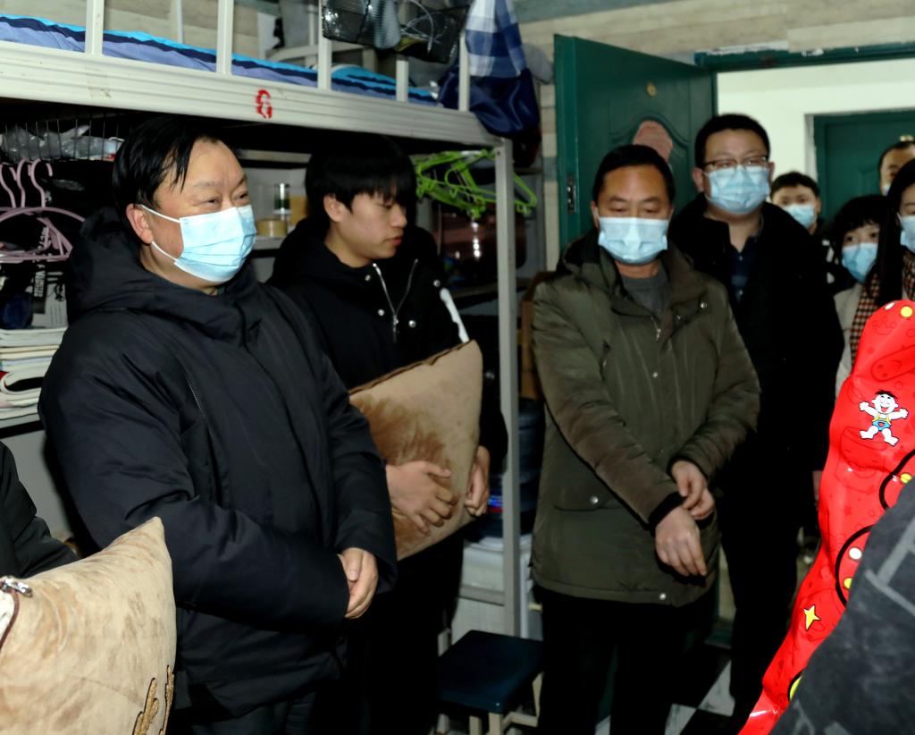 12月31日,党委副书记、校长何礼果,党委常委、副校长代红英,党委常委、副校长张明及相关职能部门负责人一行走访学生宿舍,了解同学们生活情况并进行慰问。
