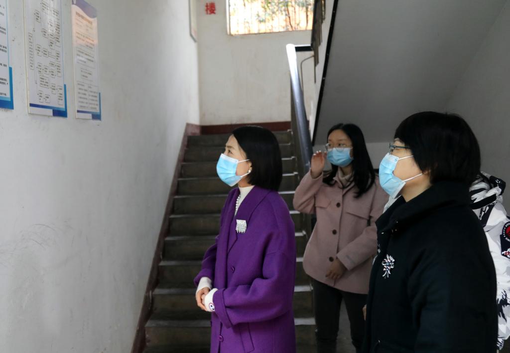 王琳玲一行在代红英陪同下检查校内疫情防控工作