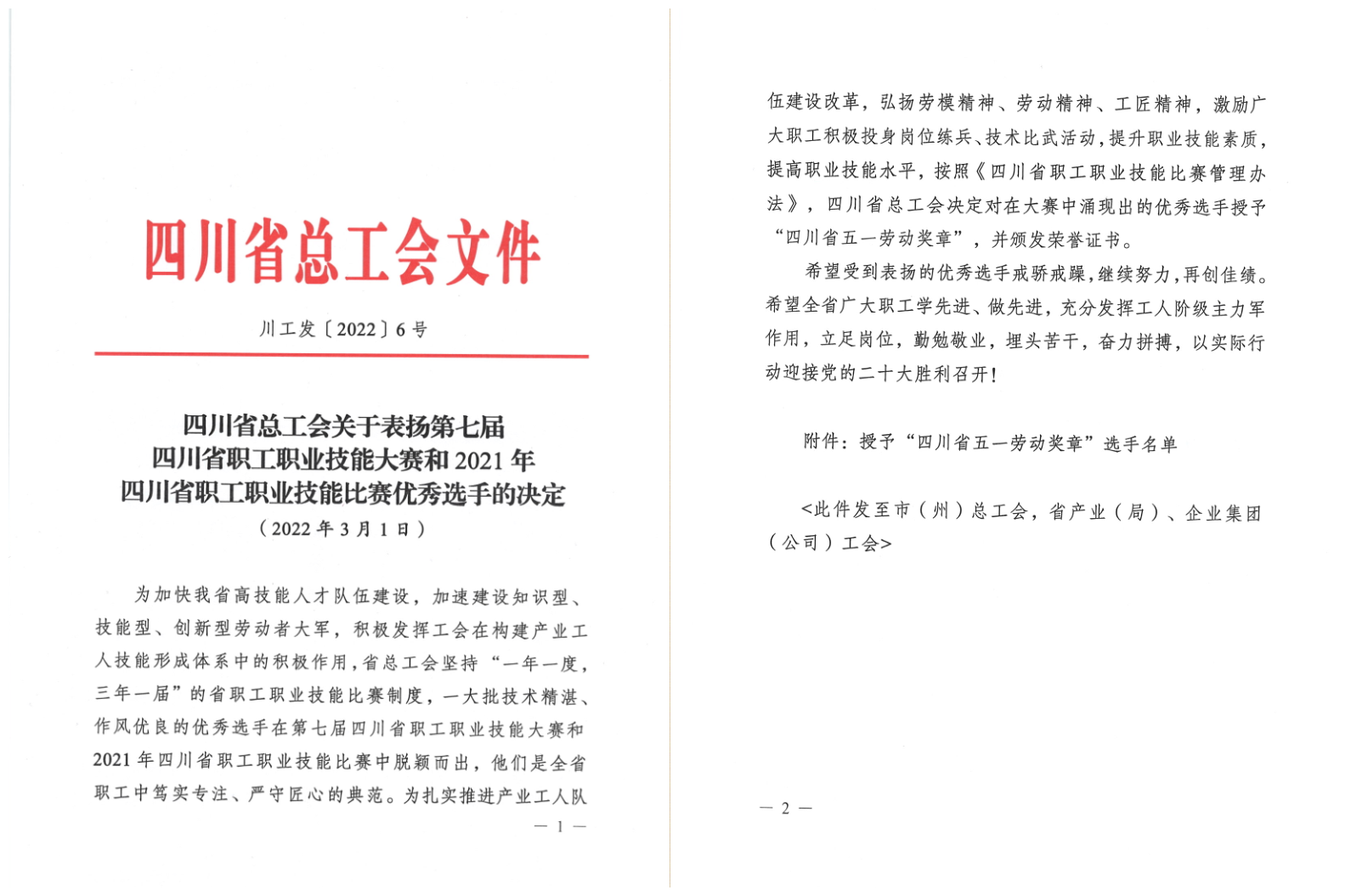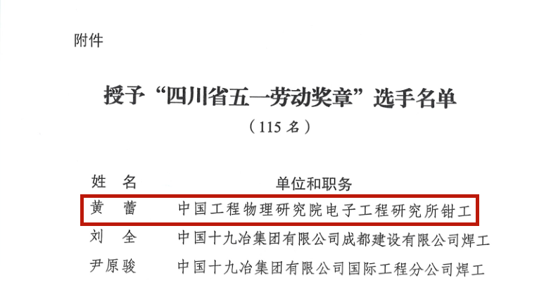 为扎实推进产业工人队伍建设改革,弘扬劳模精神、劳动精神、工匠精神,激励广大职工积极投身岗位练兵、技术比武活动,提升职业技能素质,提高职业技能水平,近日,四川省总工会决定对在第七届四川省职工职业技能大赛和2021年四川省职工职业技能比赛中的优秀选手进行表彰。米兰官网优秀校友黄蕾荣膺“四川省五一劳动奖章”。