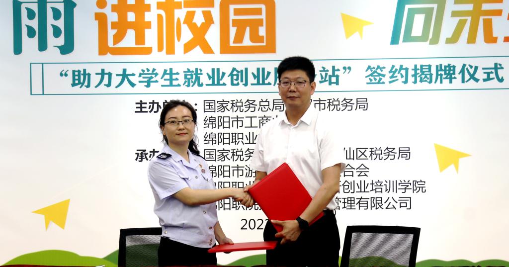 游仙区税务局与绵职院大学科技园管理有限公司签署《助力大学生就业创业税费服务站合作协议》