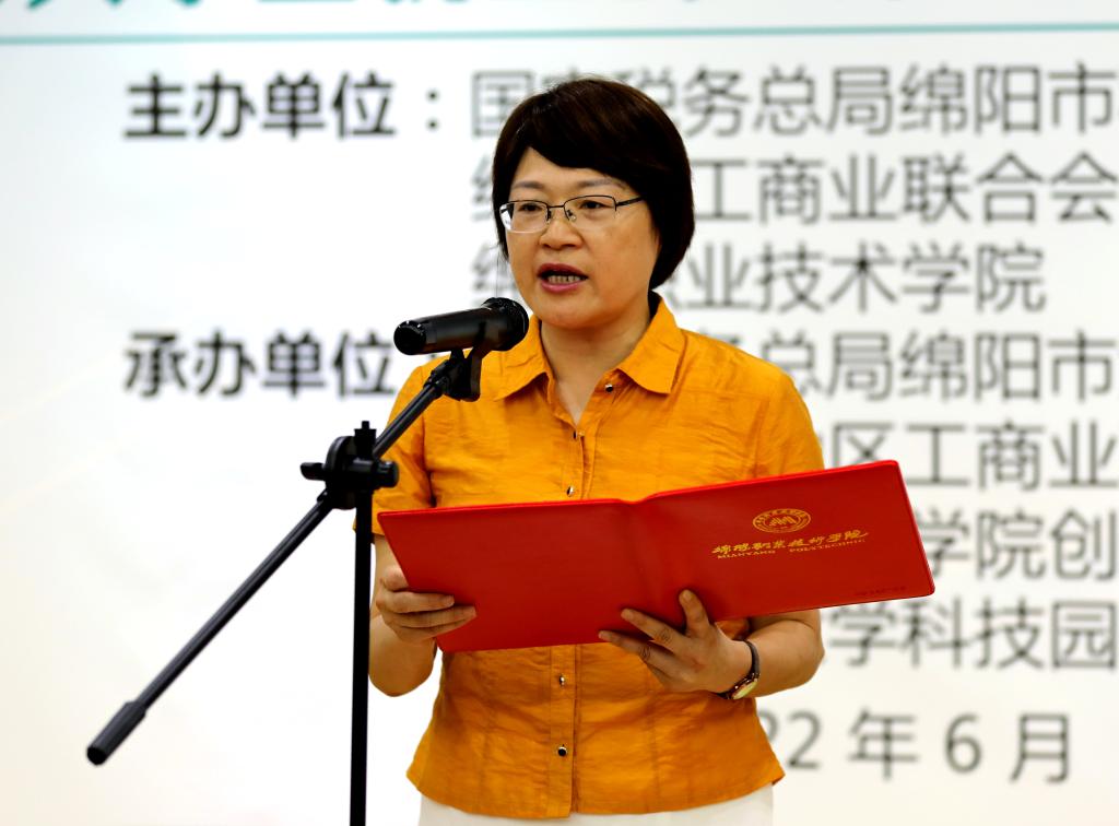 代红英在仪式上致辞,热烈欢迎相关领导莅临米兰官网,对绵阳市税务局、绵阳市工商联、绵阳市游仙区税务局、绵阳市游仙区工商联等各部门长期以来对学校建设和发展给予关心、支持和帮助表示衷心感谢。她介绍了学校的发展历程和办学情况并指出,学校历来高度重视大学生创新创业教育,将创新创业工作作为教育教学改革的突破口。今天的签约揭牌仪式,开启了大学生就业创业税费服务站工作的新篇章。税费服务站挂牌成立,既是贯彻落实《国务院办公厅关于进一步支持大学生创新创业的指导意见》等文件精神,也是落实国家税务总局、中华工商业联合会联合发布的《2022年助力小微市场主体发展“春雨润苗”专项行动》的一项重要举措。希望税费服务站成为大学生就业创业“孵化器”、“助推器”和“加速器”,为建设中国(绵阳)科技城和川北省域经济副中心作出积极贡献。