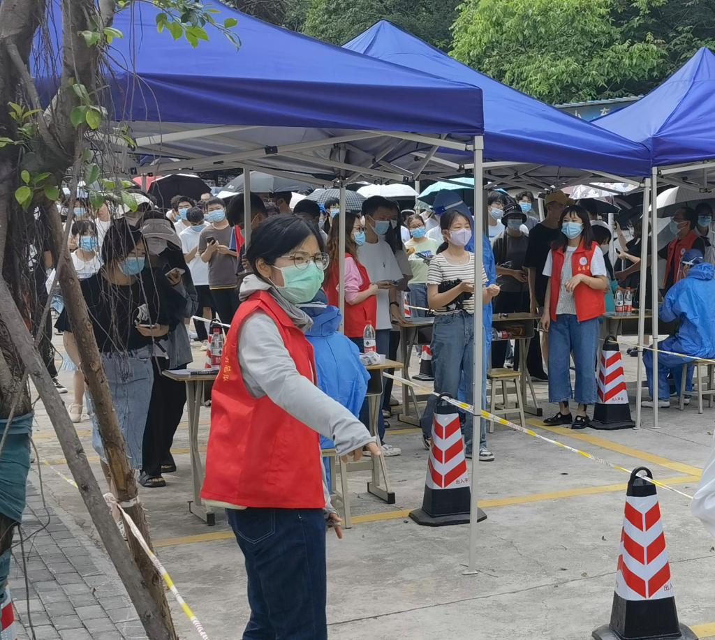 作为一名共产党员,图书馆教职工彭文参加了核酸检测秩序维护、协助统计家属楼栋人员信息等志愿活动。他说:“在志愿活动过程中,我看到了医务人员的艰辛付出,也看到了同学们和教职工们对防疫工作的默默支持和配合。寒冬总会过去,暖春定会来临。相信在党的坚强领导下,我们同舟共济,静待花开。”