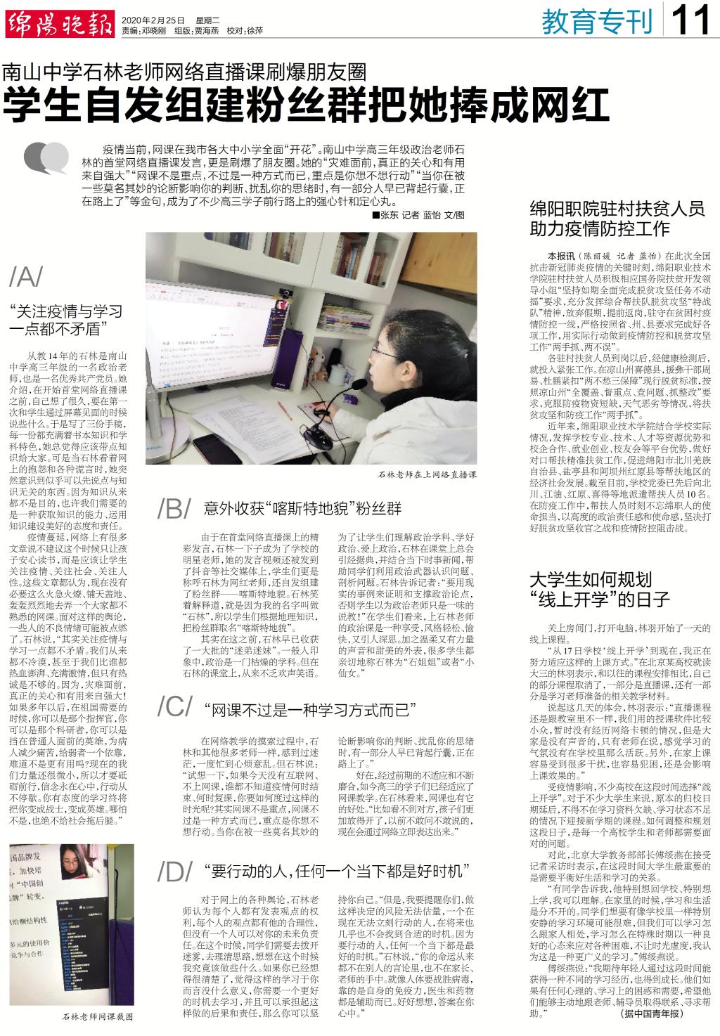 搜狐网、绵阳晚报:ac米兰官网中文网站驻村扶贫人员助力疫情防控工作